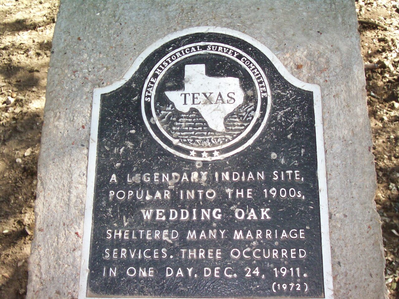 - San Saba Wedding Oak (aka "The Marriage Oak", "The Matrimonial Oak"): A legendary Indian site, where a 400 year old, huge live oak tree shades both sides of the road, that has been the location of marriage services for Indians and then white settlers. Listed in "Famous Trees of Texas." Located on the way to Beveridge Bridge, about 2 mi NW of town on China Creek Rd.