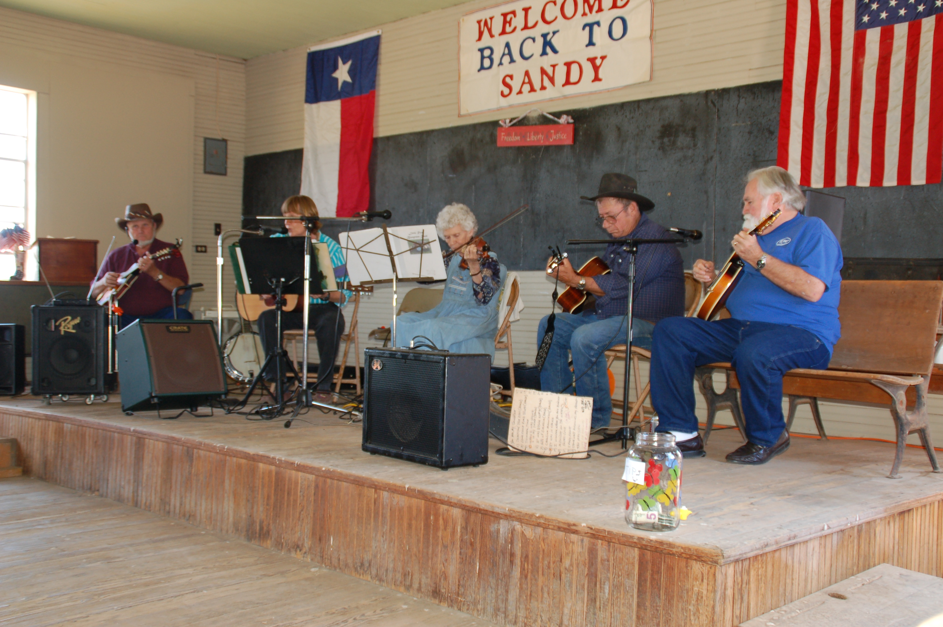 SANDY SCHOOL HOUSE: Sandy School, Hornsby Class 115 Sandy School Rd, Sandy, TX 78636. Off RR-1323, 1.6 miles NW of intersection with RR-1320. Historic school, in process of being restored as a community center. Send contributions and volunteer inquires to Joe Stewart, 830-868-0873